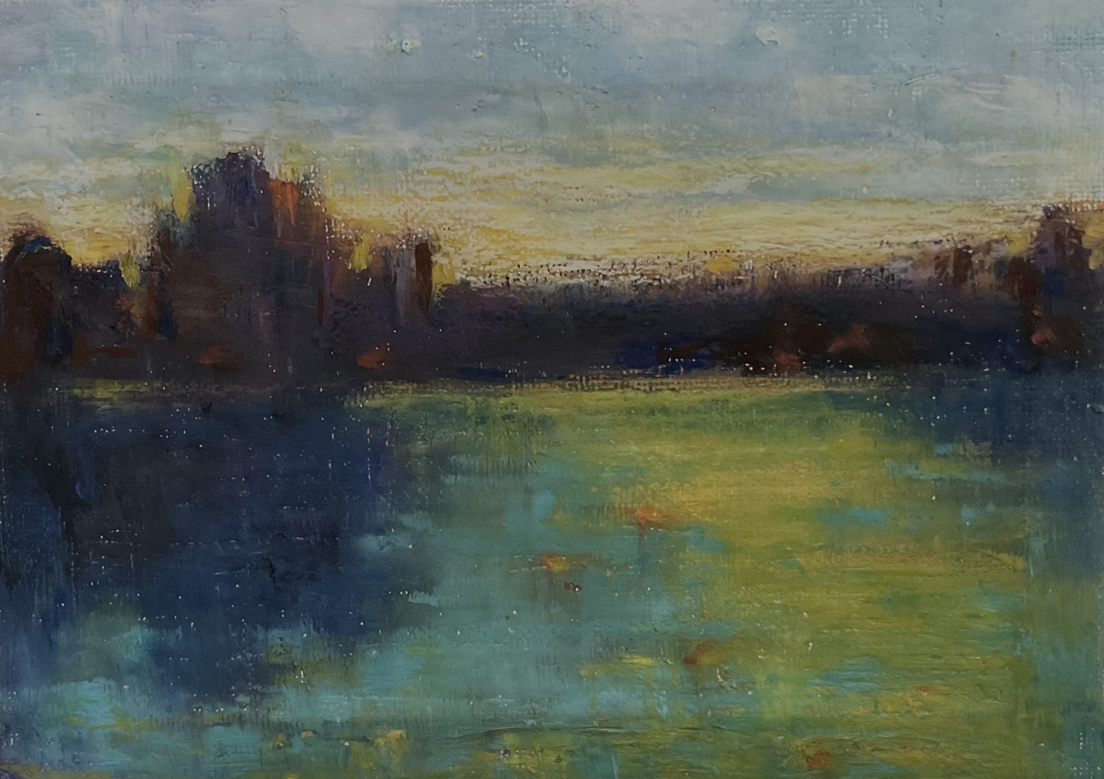 Across the Lake 5 x7 Oil Pastel on Canvas
